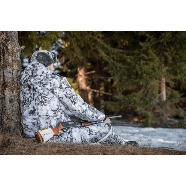 Костюм для зимней ходовой охоты. Отличается «безшумностью», отсутствием бликования на солнце и надежной защитой от мокрого снега и влаги.
